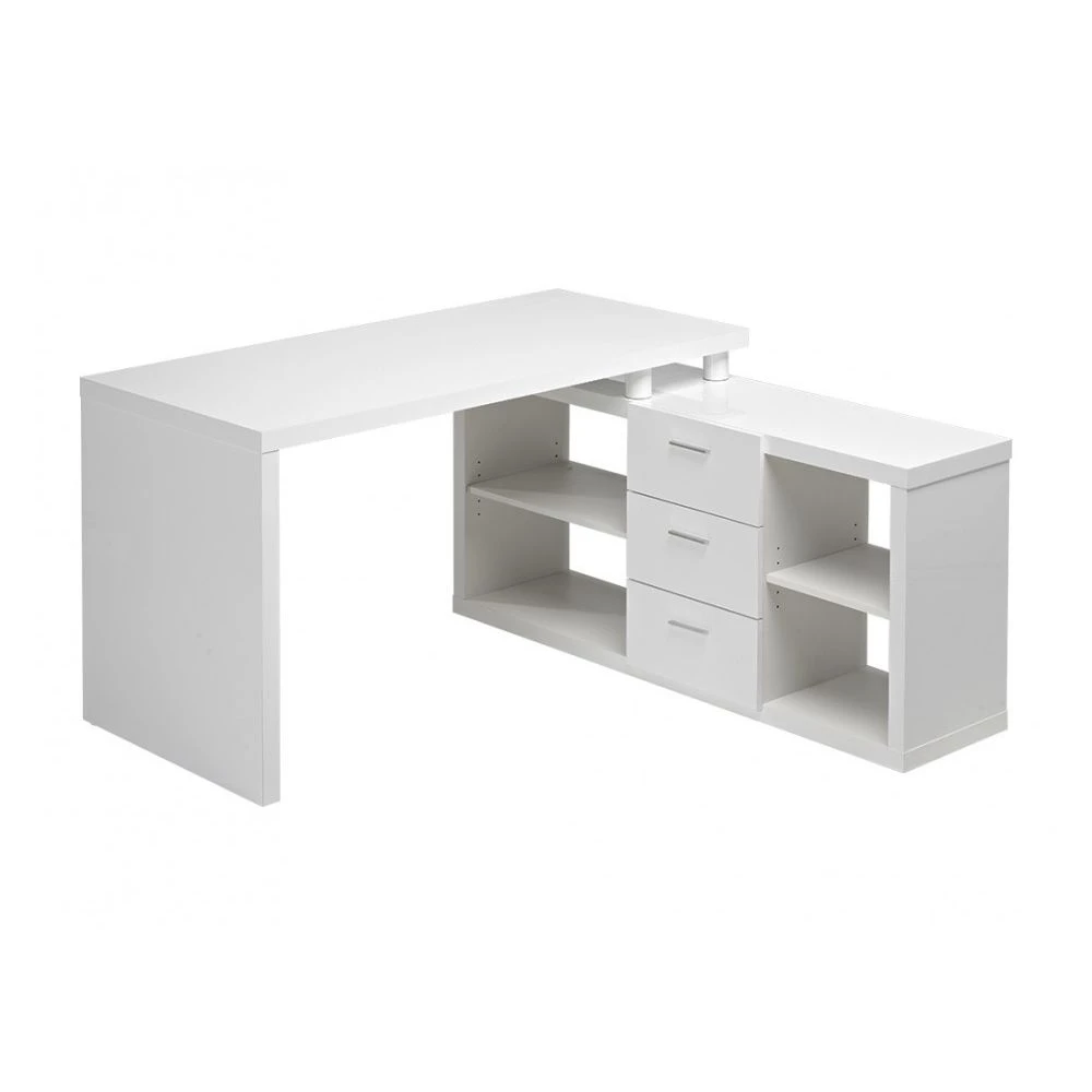 Points forts Vente-Unique Bureau d’angle avec rangements ALDRIC III – Blanc