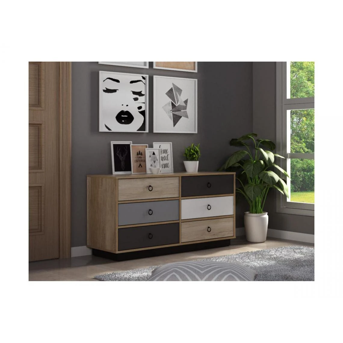Points forts Vente-Unique Commode KRYPTON – 6 tiroirs – Coloris : chĂŞne, blanc et gris