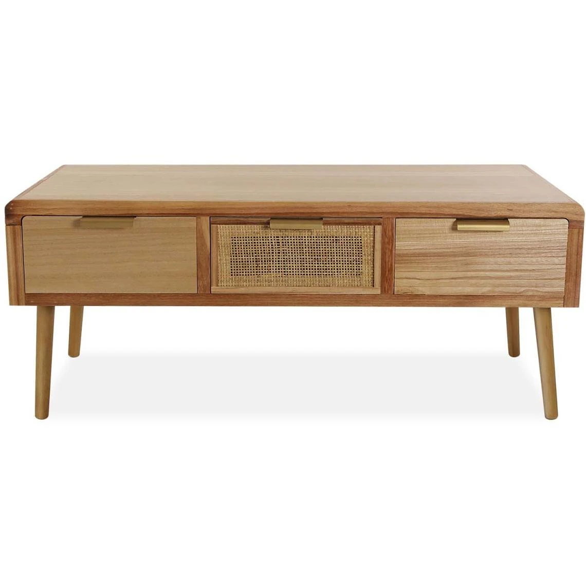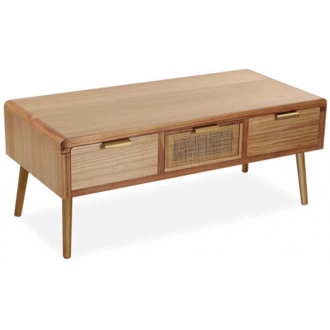 Meuble bas en paulownia et rotin 3 tiroirs