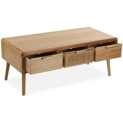 Points forts VERSA Meuble bas en paulownia et rotin 3 tiroirs