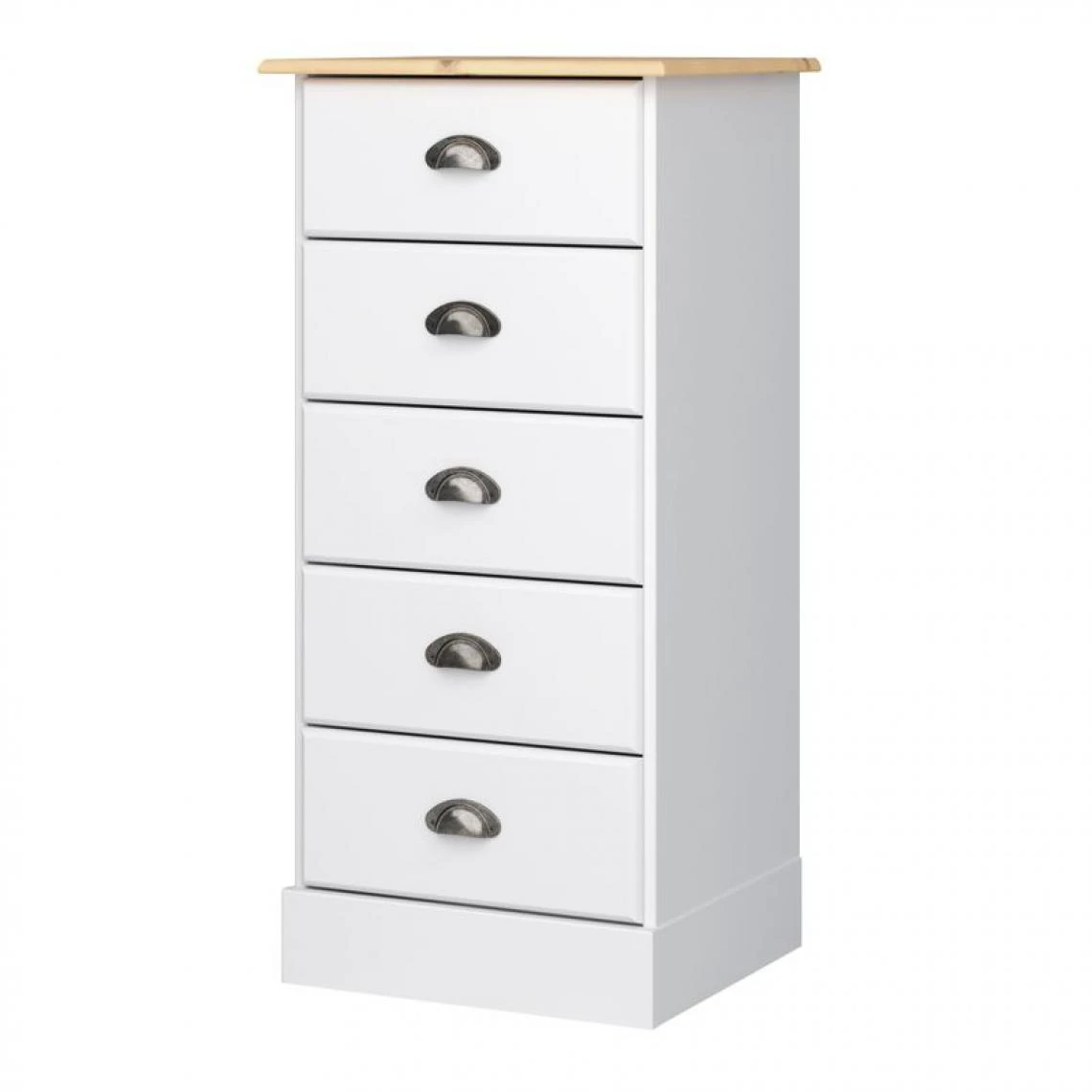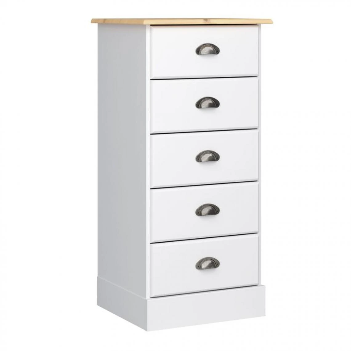Points forts Zandiara Chiffonnier 5 tiroirs HAMPTON blanc et pin massif