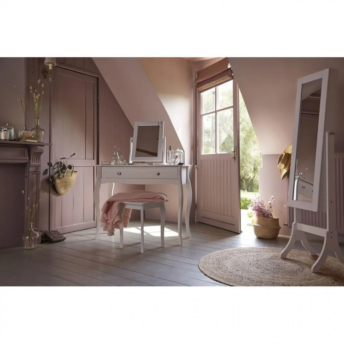Cette console blanche allie Ă©lĂ©gance et raffinement grâce Ă sa teinte Ă©purĂ©e qui permet de l’accorder Ă tout style de mobilier de chambre. Son cĂ´tĂ© romantique est offert par les pieds courbĂ©s en pin massif et les poignĂ©es en nickel dont le coloris contraste avec celui de cette console en panneaux de fibre.
