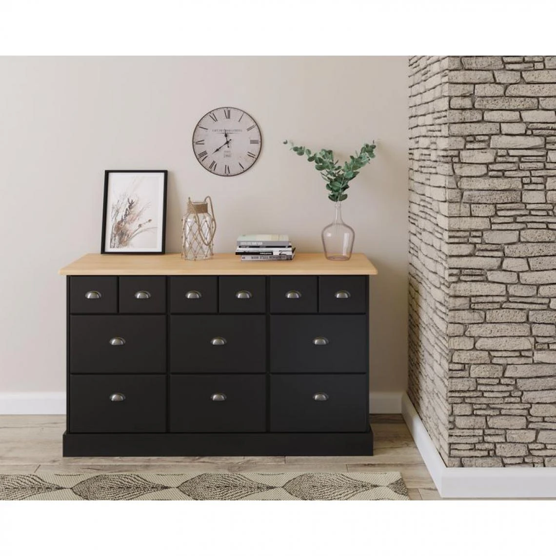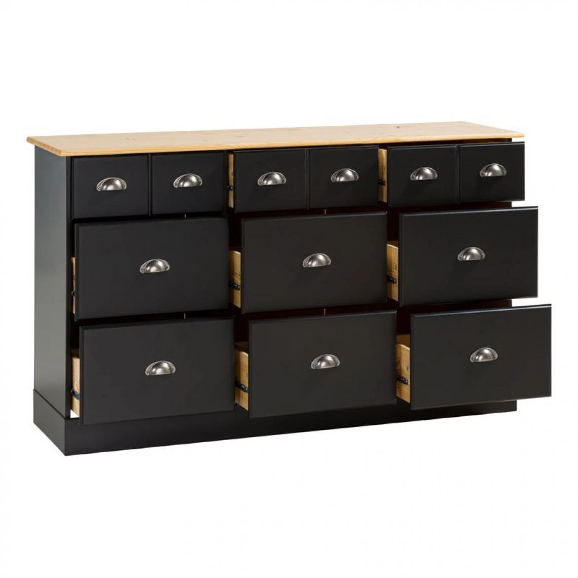 Points forts Zandiara Range-tout 9 tiroirs HAMPTON noir et pin massif