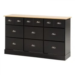 Teinte :noir et miel. . Tiroir : Fonds de tiroirs et panneaux arrière en panneaux de fibres de haute densitĂ© brut. . Tiroirs :9. . Finition :laquĂ©e UV et acrylique. . Garantie :2 ans, Pièces. . Structure : en pin massif et en panneaux de fibres de moyenne densitĂ©. . A monter soi-mĂŞme. . Dimensions en cm : L. 134 – H. 78,5- P. 38,5 cm. . Dispo pcs dĂ©tachĂ©es donnĂ©e fournisseur :NC. .